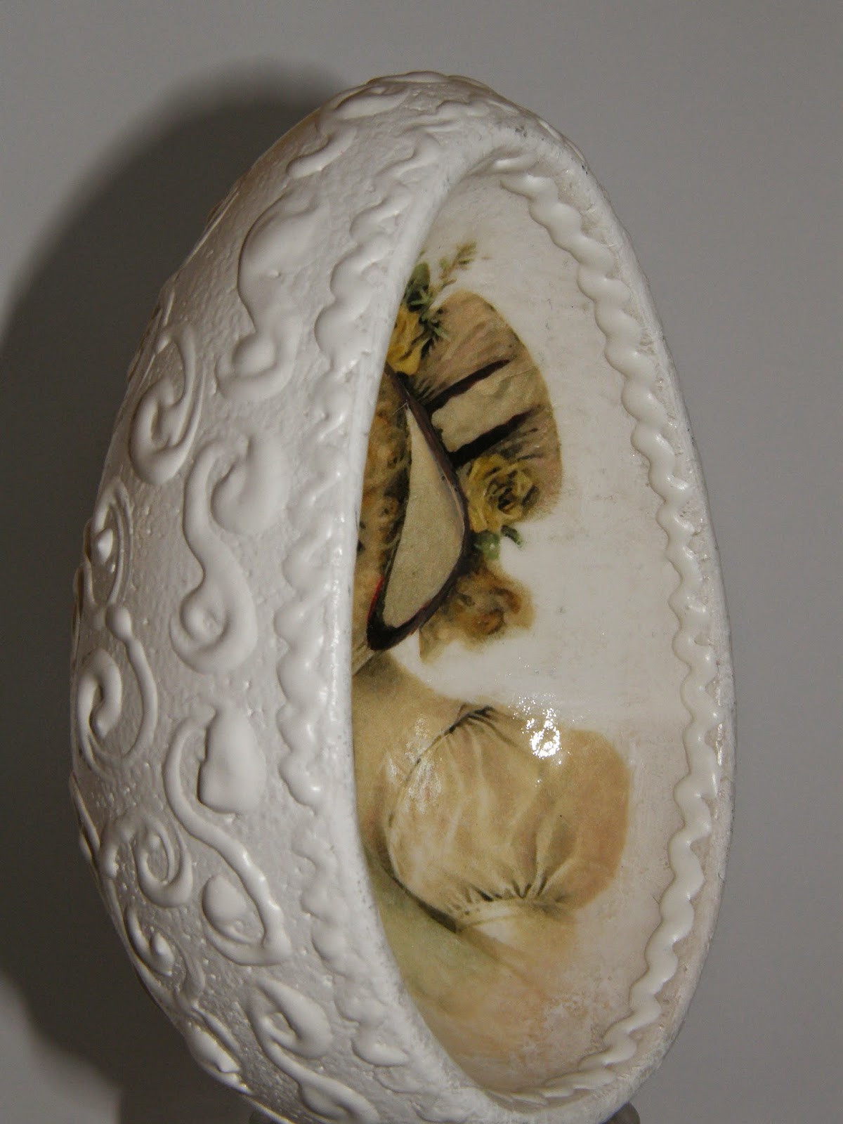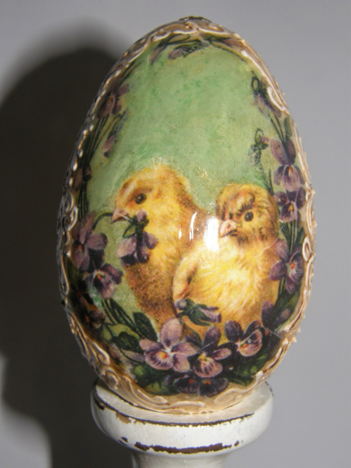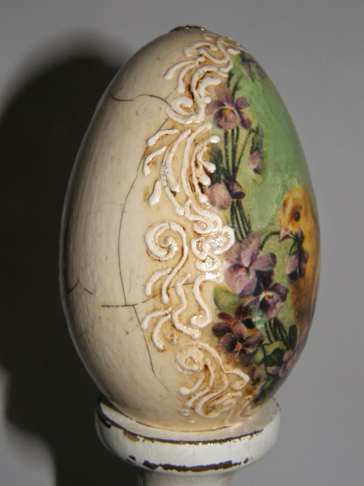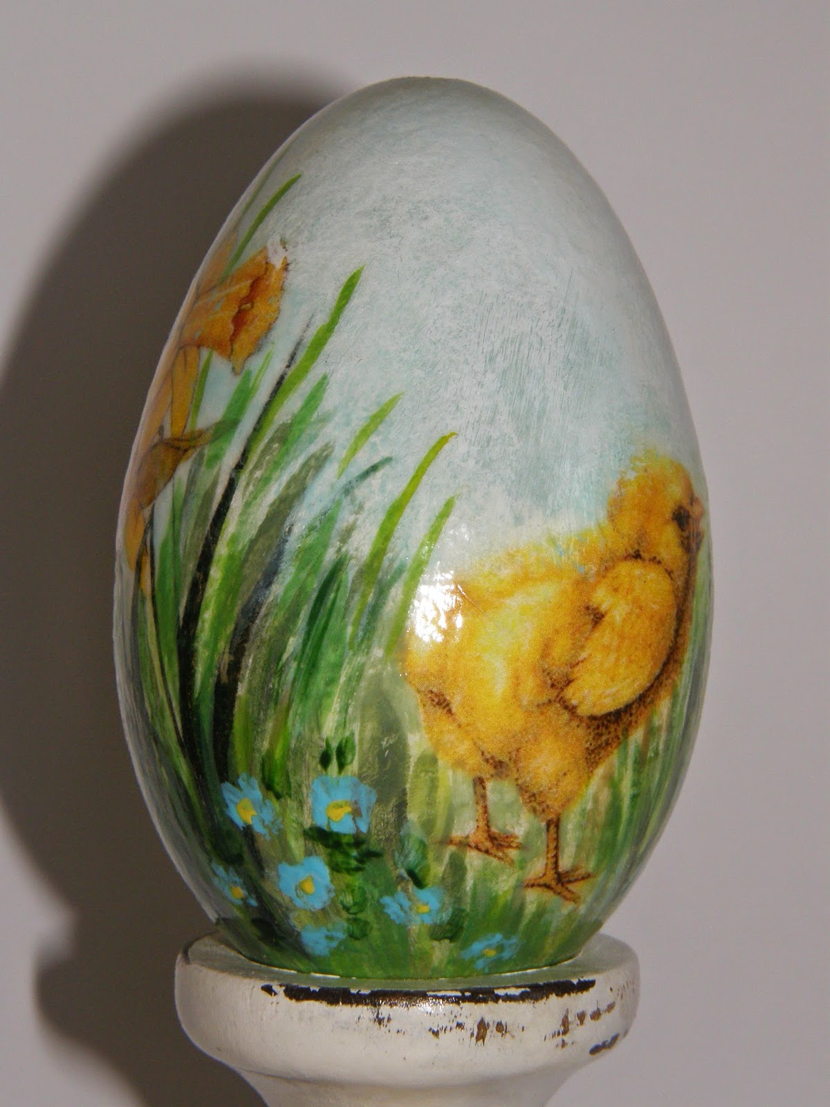 Dla wszystkich odwiedzających wszystkiego najlepszego z okazji Świąt Wielkanocnych. :) Trochę z opóźnieniem, ale w końcu wstawiam jajeczka, większość to wydmuszki gęsie i parę styropianowych.Taki trochę miszmasz. Bardzo lubię takie kurczaczkowe, jak ze starych kartek świątecznych, przypominają mi moje dzieciństwo, gdy nieporadnie próbowałam je rysować kredkami. Ach pamiętam jak wiecznie prosiłam moją mamę o kredki i blok rysunkowy... tak mało mi wtedy było potrzebne do szczęścia. Fajne to były czasy. :)