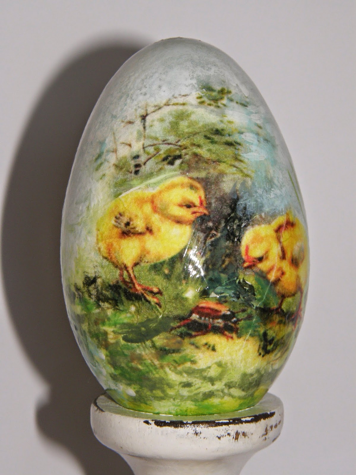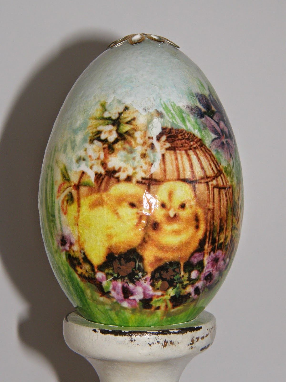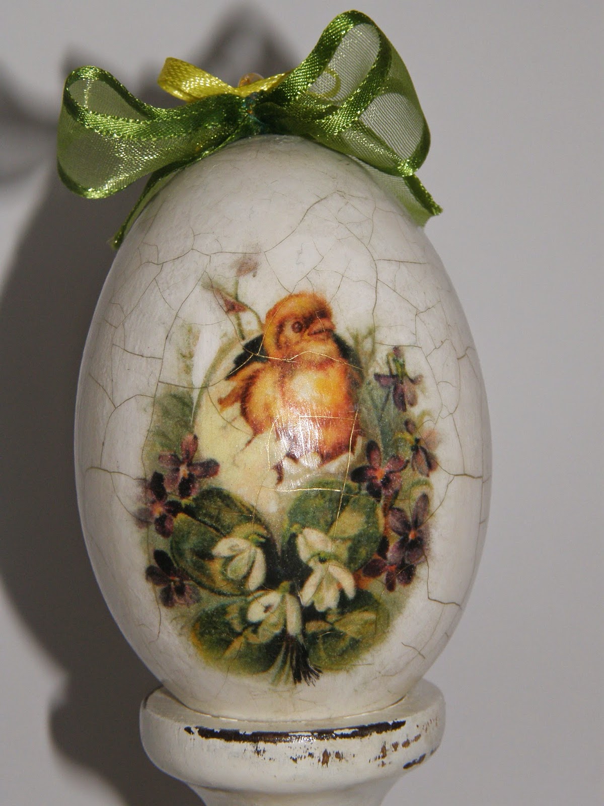 Dla wszystkich odwiedzających wszystkiego najlepszego z okazji Świąt Wielkanocnych. :) Trochę z opóźnieniem, ale w końcu wstawiam jajeczka, większość to wydmuszki gęsie i parę styropianowych.Taki trochę miszmasz. Bardzo lubię takie kurczaczkowe, jak ze starych kartek świątecznych, przypominają mi moje dzieciństwo, gdy nieporadnie próbowałam je rysować kredkami. Ach pamiętam jak wiecznie prosiłam moją mamę o kredki i blok rysunkowy... tak mało mi wtedy było potrzebne do szczęścia. Fajne to były czasy. :)
